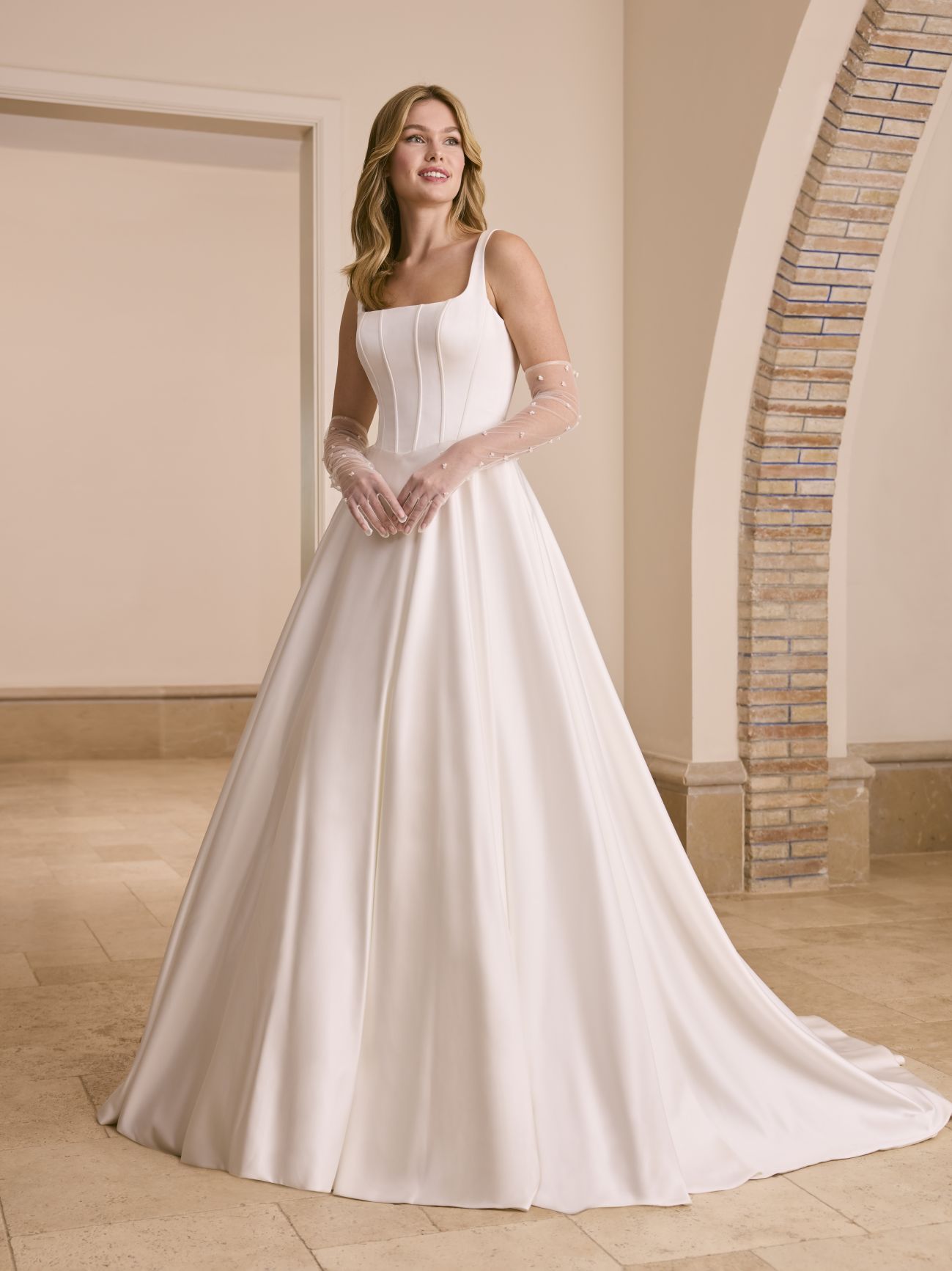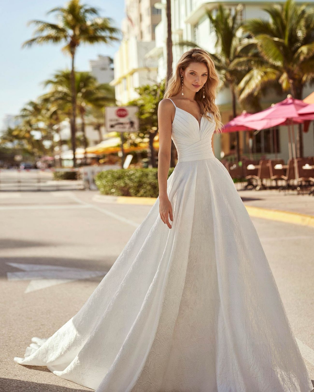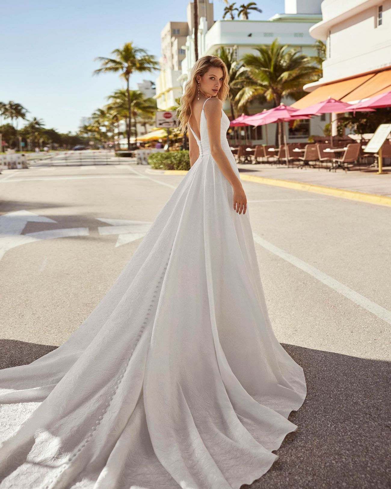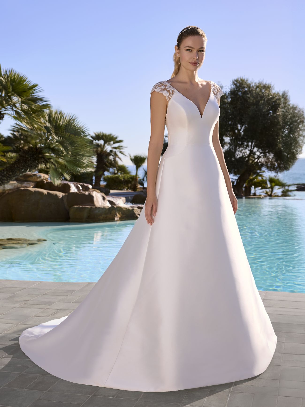 We typically carry sizes 6-18 but some styles are available to order up to size 24. Prices from €699 – €2,200.